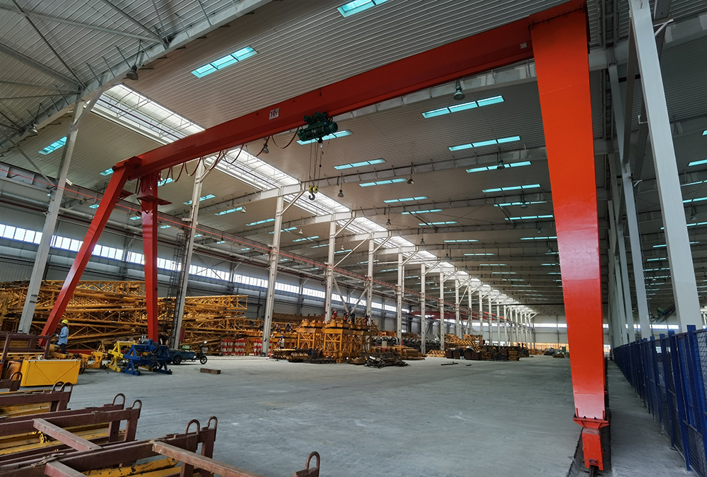 龍門起重機(jī)的起升機(jī)構(gòu)、小車運(yùn)行機(jī)構(gòu)和橋架結(jié)構(gòu),與橋式起重機(jī)基本相同。由于跨度大,起重機(jī)運(yùn)行機(jī)構(gòu)大多采用分別驅(qū)動方式,以防止起重機(jī)產(chǎn)生歪斜運(yùn)行而增加阻力,甚至發(fā)生事故。龍門起重機(jī)的起重小車在橋架上運(yùn)行,有的起重小車就是一臺臂架型起重機(jī)。橋架兩側(cè)的支腿一般都是剛性支腿;跨度超過30米時(shí),常是一側(cè)為剛性支腿,而另一側(cè)通過球鉸和橋架連接的柔性支腿,使門架成為靜定系統(tǒng),這樣可以避免在外載荷作用下由于側(cè)向推力而引起附加應(yīng)力,也可補(bǔ)償橋架縱向的溫度變形龍門起重機(jī)的受風(fēng)面積大,為防止在強(qiáng)風(fēng)作用下滑行或翻倒,裝有測風(fēng)儀和與運(yùn)行機(jī)構(gòu)聯(lián)鎖的起重機(jī)夾軌器。橋架可以是兩端無懸臂的;也可以是一端有懸臂或兩端都有懸臂的,以擴(kuò)大作業(yè)范圍。半龍門起重機(jī)橋架一端有支腿,另一端無支腿,直接在高臺架上運(yùn)行。