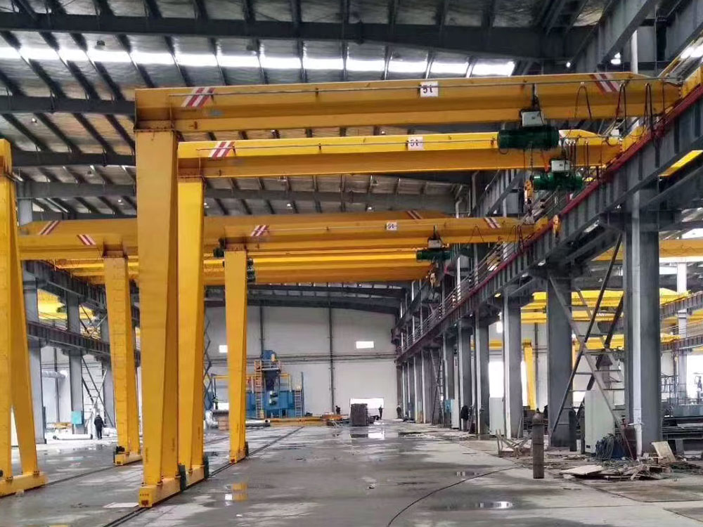 ?、倨胀堥T起重機:這種起重機用途廣泛,可以搬運各種成件物品和散狀物料,起重量在100噸以下,跨度為4~35米。用抓斗的普通門式起重機工作級別較高。